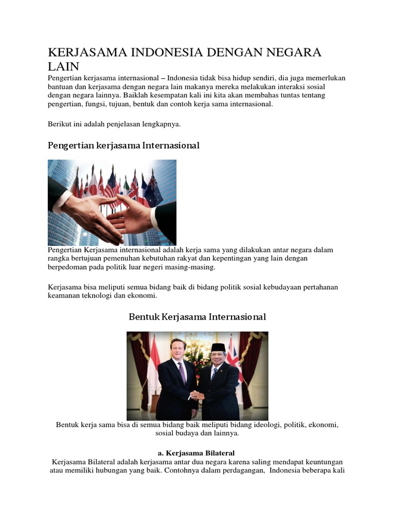 Kerjasama Ekonomi Internasional from cdn.slidesharecdn.com Kerja sama ekonomi internasional adalah sebuah bentuk kerjasama dalam bidang ekonomi yang dilakukan oleh suatu negara dengan negara lain, yang akan saling menguntungkan. Memudahkan negara mengetahui bentuk negara lain, seperti apa? Berikut ini adalah berbagai macam manfaat dari hubungan internasional yang dibangun di bidang ekonomi.