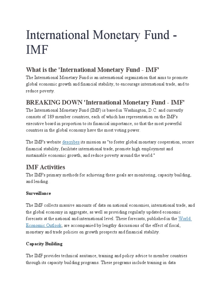 International Monetary Fund Wikipedia from upload.wikimedia.org The international monetary fund (imf), conceived at the bretton woods conference in july 1944, is the multilateral organization focused on the international monetary system. The international monetary fund or imf is an institution meant for providing financial aid and bestow financial stability to its different member countries at international level. Imf also takes a significant.